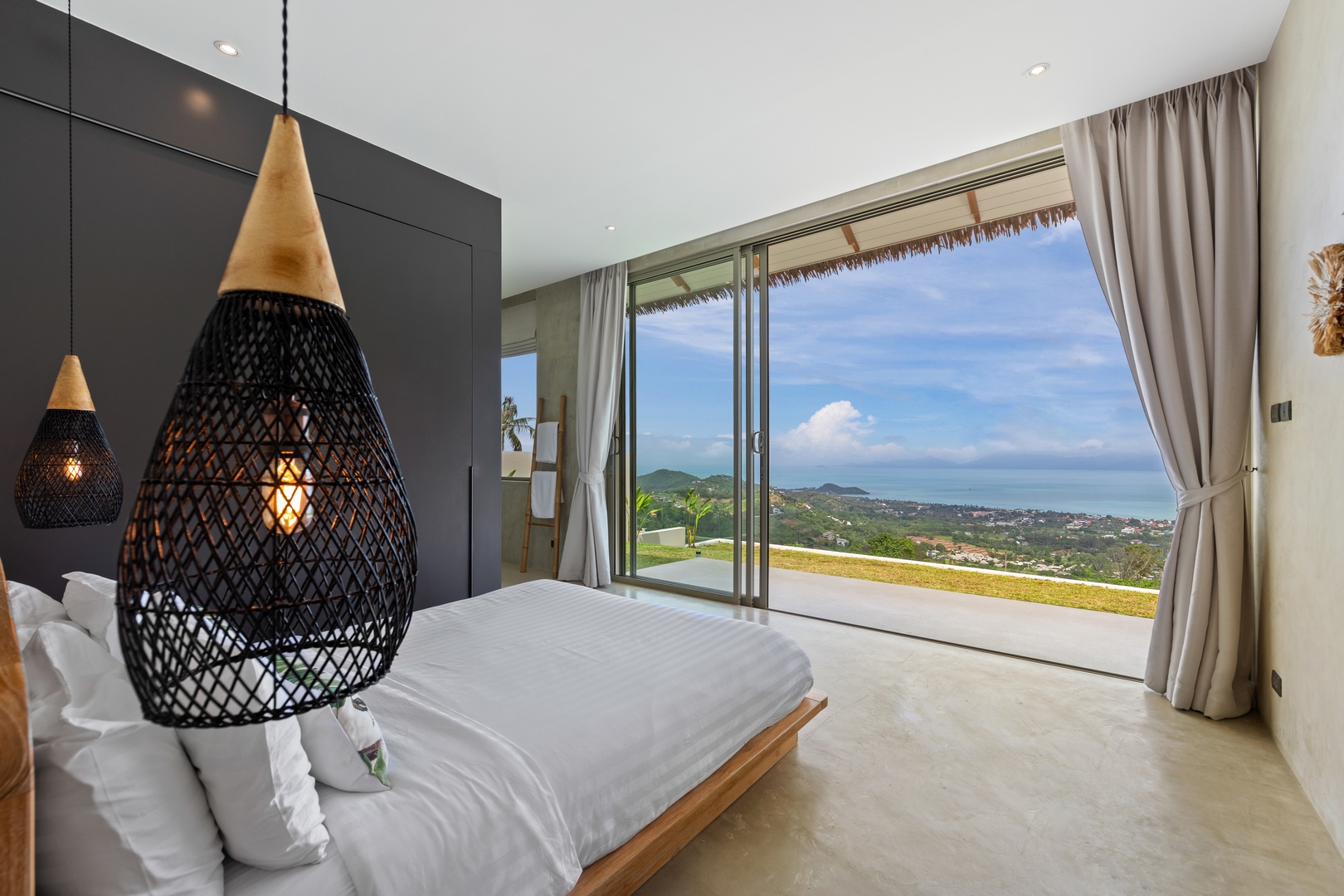 Villa Lilly Belle offers the best of life in Koh Samui. Set on the top of a hill, this rental home offers majestic views of rolling hills, verdant valleys, and the wide ocean right in front of your eyes. And behind you, a rich wooded forest rises sharply.